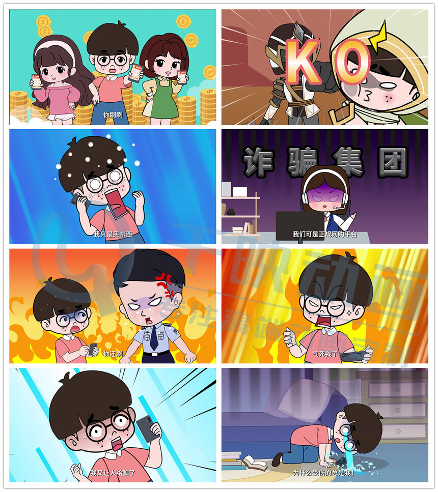 我们深知,传统的说教式宣传已难以满足现代受众的需求。因此,千映动画利用二维动画的灵活性与表现力,将复杂的诈骗手段巧妙融入趣味横生的故事情节中。从智斗“假冒客服”到揭露“冒充公检法诈骗”,每一帧画面都蕴含着深刻的防骗智慧,让观众在欢笑中学习,在学习中成长。