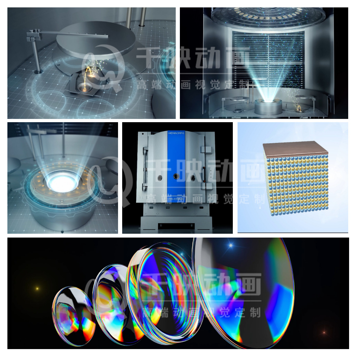 动画里,观众会像“钻”进机器内部一样,看到真空环境里的小粒子怎么排队,一层层附着在材料表面,变成看不见的防护甲。项目特别设计设备拆解动画,多角度透视关键部件结构,比如用彩虹色灯光表现不同材料的镀膜效果,用流畅的动画演示复杂的工艺步骤,通过这种简单又酷炫的方式,汇成真空镀膜的技术实力一下子就变得好懂又吸引人。