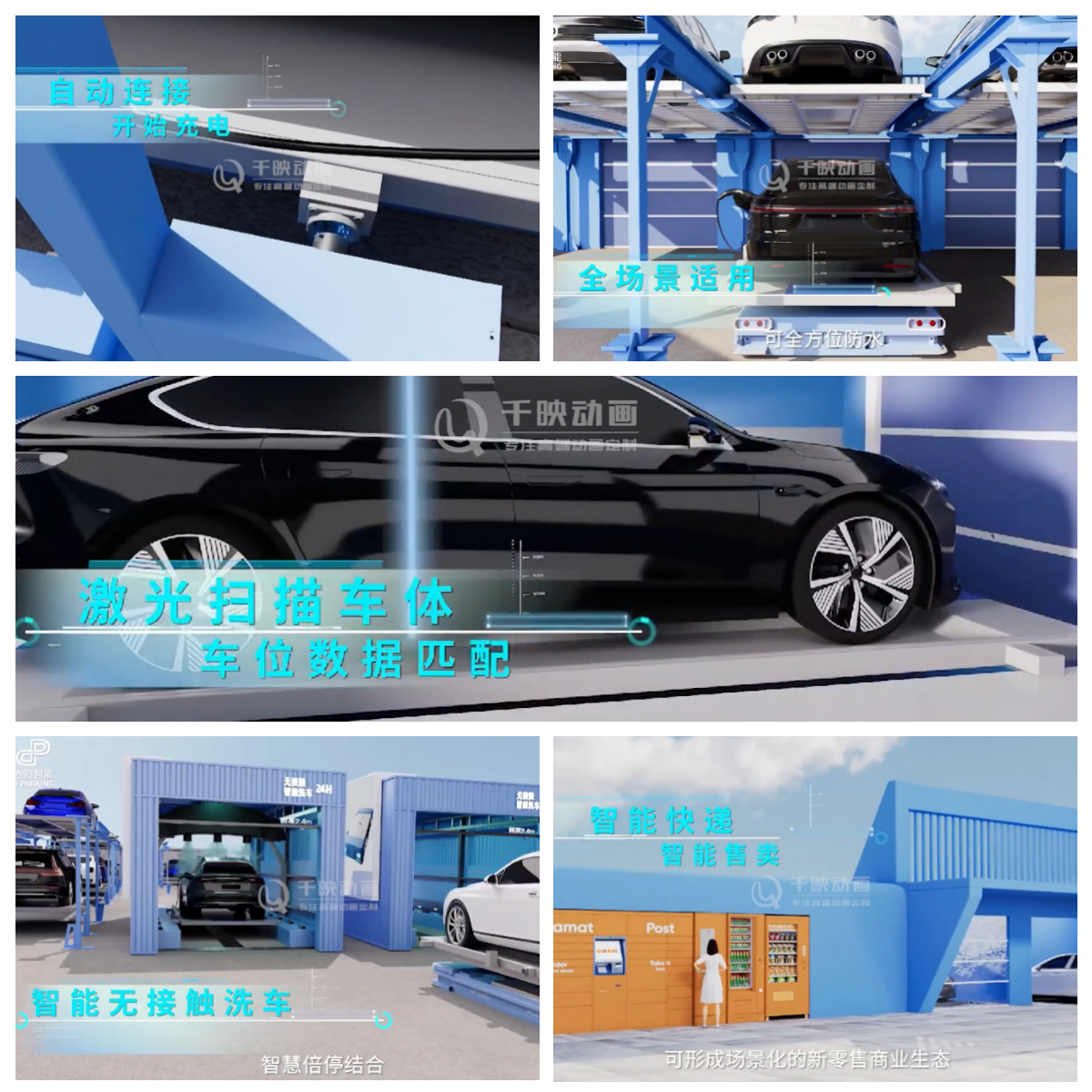在千映动画的镜头下全景式演绎智能停车的未来图景,将复杂的自动化流程转化为直观的视觉体验。