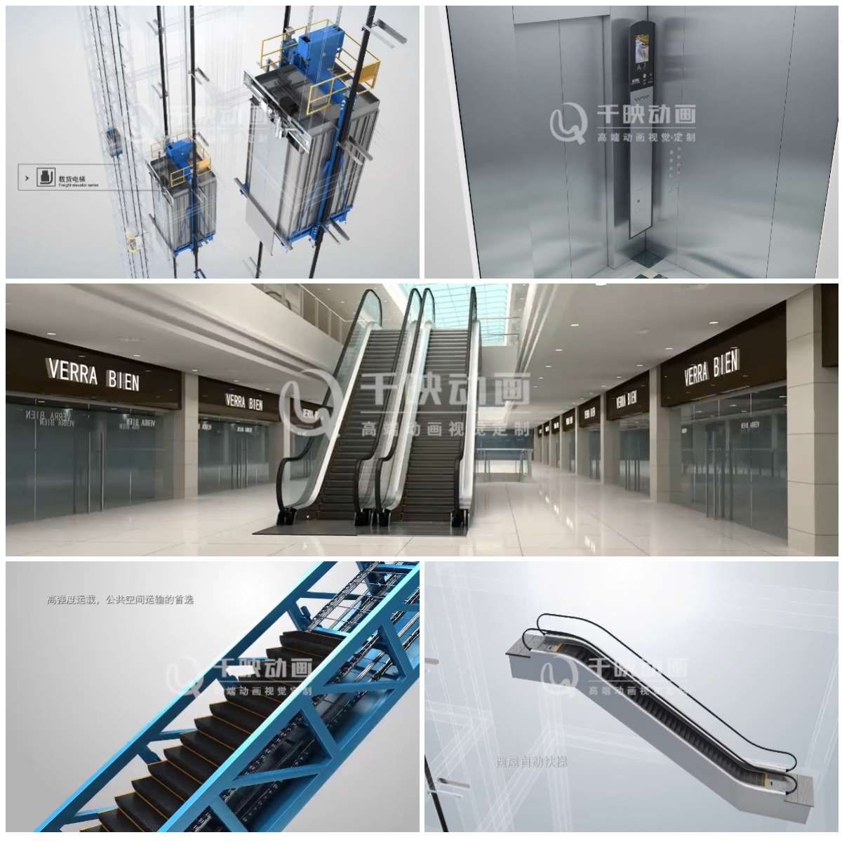 千映动画工业级3D动画技术为载体全面展示电梯的多元化产品线、精密的内部构造、以及自动扶梯的高效安装与运行。全面呈现电梯的品类、部件亮点、及动态安装过程,让核心信息直观可感,助力客户快速建立清晰认知。